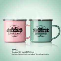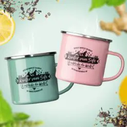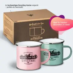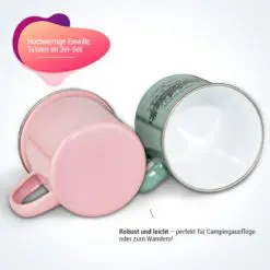 “Weltentdecker Duo” Emaille Tassen 2er-Set im Retro-Look | Runter vom Sofa und entdecke die Welt!